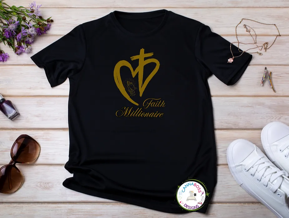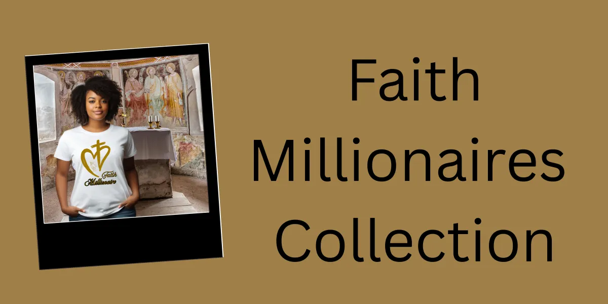 The Faith Millionaires Collection was created for believers who dream big, hustle hard, and keep God at the center of it all. From bold t-shirts and tanks to empowering notebooks, stickers, and hats—every piece is a declaration that faith and financial freedom can walk hand-in-hand.