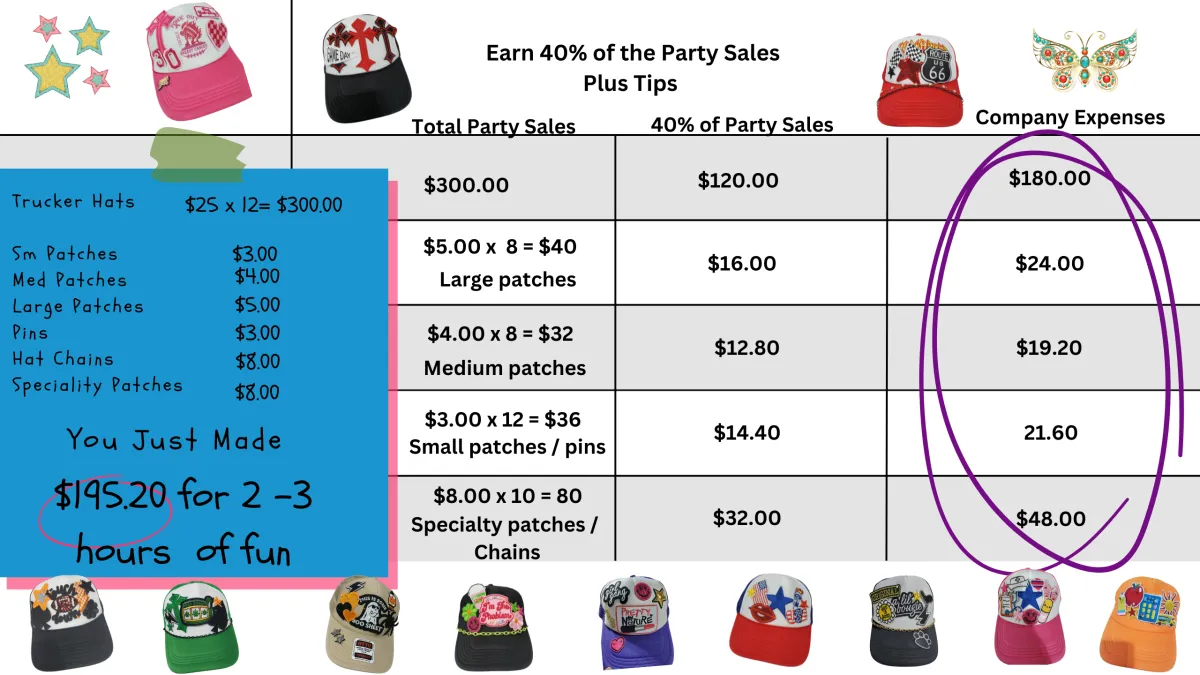 A Hatender is like the mixologist of the fashion world—someone who curates, customizes, and serves up stylish trucker hats and headwear in a fun, engaging way. Instead of mixing cocktails, you’re “mixing” patches, embroidery, bling, and creative designs to craft personalized hats for your customers. A Hatender isn’t just selling hats; they’re creating experiences, memories, and statements of identity through headwear.