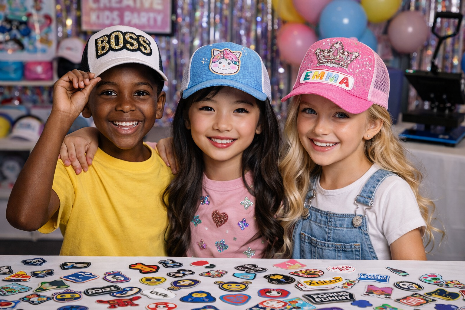 Our Children’s Trucker Hat Parties are more than a craft table — they’re a fully guided, safe, and unforgettable experience designed specifically for kids. Unlike generic party vendors, we specialize in interactive hat design, kid-friendly materials, and age-appropriate fun that keeps children engaged, confident, and excited from start to finish.